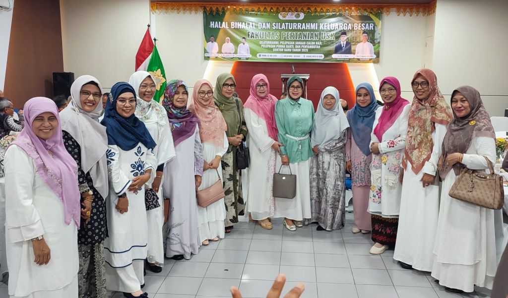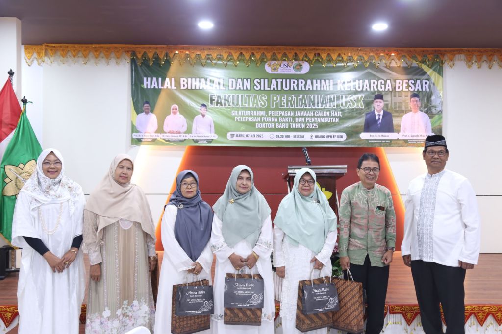 Banda Aceh, 7 Mei 2025 – Suasana penuh kehangatan dan kekeluargaan menyelimuti Ruang MPR Fakultas Pertanian Universitas Syiah Kuala (USK) saat digelar kegiatan tahunan Halal Bihalal dan Silaturahmi Keluarga Besar Fakultas Pertanian, Rabu (7/5). Acara ini menjadi momen penting untuk merajut silaturahmi pasca-Ramadhan sekaligus menjadi wadah melepas para calon jamaah haji, purna bakti, serta menyambut doktor-doktor baru di tahun 2025.