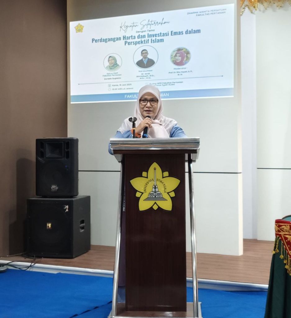 Banda Aceh (19 Juni 2025)– Darma Wanita Persatuan (DWP) Fakultas Pertanian Universitas Syiah Kuala (USK) menggelar kegiatan edukatif yang berlangsung pada Kamis (19/6) di Multy Purpose Room. Kegiatan ini bertujuan untuk mempererat tali silaturahmi antaranggota sekaligus memberikan kontribusi nyata bagi masyarakat sekitar. Acara dihadiri oleh jajaran pengurus DWP, dosen, dan staf Fakultas. Adapun Thema pertemuan ini adalah “Perdagangan Harta dan Investasi Emas dalam Perspektif Islam” oleh pemateri Dr. Israk Ahmadsyah, B.Ec., M.Ec., M.Sc. Beliau merupakan Lektor Kepala pada Prodi Perbankan Syariah pada Program Studi S1 Perbankan Syariah FEBI UIN Ar-Raniry Banda Aceh.