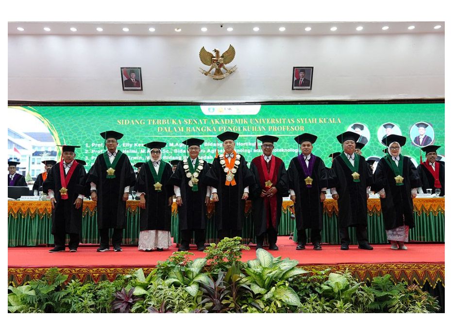 Banda Aceh, 17 Juli 2025 — Universitas Syiah Kuala (USK) kembali mencatatkan tonggak sejarah penting dalam dunia akademik dengan mengukuhkan enam profesor baru dari berbagai disiplin ilmu dalam Sidang Terbuka Senat Akademik yang berlangsung di Gedung AAC Prof. Dr. Dayan Dawood, MA. Acara ini dipimpin oleh Ketua Senat Akademik Universitas, Prof. Dr. Ir. Abubakar, M.S., dan dihadiri oleh civitas akademika serta tamu undangan dari berbagai kalangan.