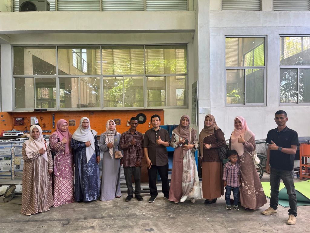 BANDA ACEH – Keuchik Gampong Riting, Zakaria bersama beberapa orang warga Gampong mendatangi Pusat Riset Mekanisasi dan Perbengkelan Pertanian (Pusmeptan) Universitas Syiah Kuala, Selasa, 5/8/2025. Kunjungan tersebut didampingi oleh Ketua Pokja 3 TP PKK Aceh, Putro Fajriah, ST.
