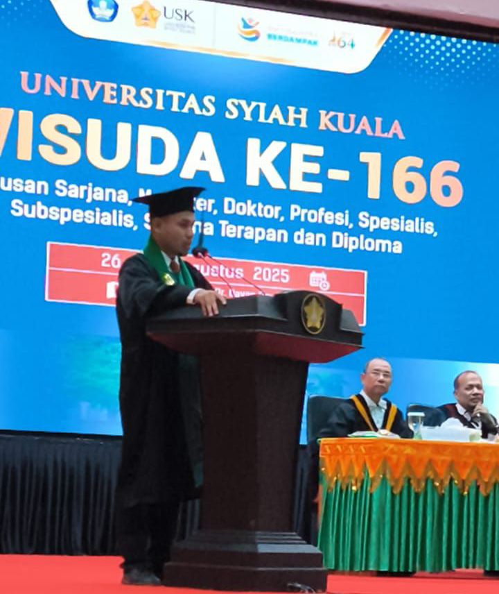 Banda Aceh, 26 Agustus 2025 – Riski Maulana, mahasiswa Program Studi Teknik Pertanian Fakultas Pertanian Universitas Syiah Kuala (USK), menjadi salah satu wisudawan yang mewakili penerima beasiswa KIP pada wisuda ke-166 USK. Riski bukan hanya sukses menyelesaikan studinya, tetapi juga meraih kesuksesan dalam dunia wirausaha, menjadi contoh nyata bagi mahasiswa lainnya bahwa pendidikan dan kewirausahaan dapat berjalan beriringan.