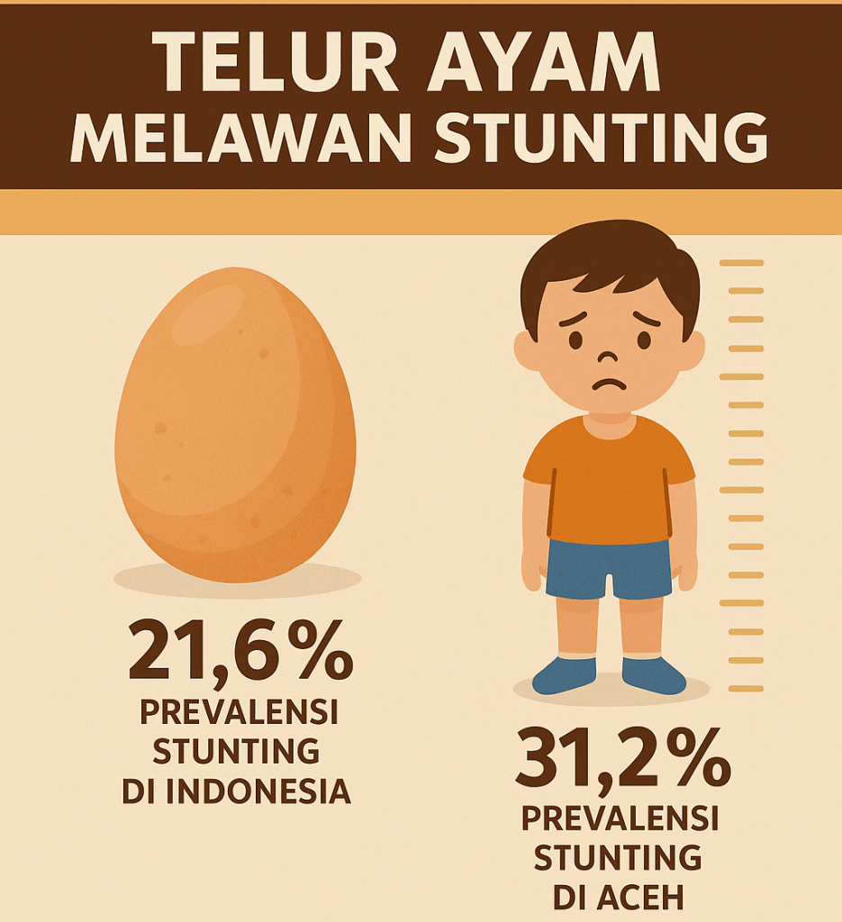 Bagaimana dengan Aceh? Provinsi yang dikenal dengan tanah suburnya, hasil lautnya yang melimpah, dan identitas religius yang kuat, ternyata menyimpan luka yang cukup dalam. Data SSGI 2022 mencatat, Aceh termasuk provinsi dengan prevalensi stunting tertinggi di Indonesia, yaitu 31,2 persen. Bayangkan, hampir sepertiga anak Aceh mengalami stunting. Sebuah ironi di tanah yang sesungguhnya kaya akan sumber pangan. Pertanyaannya: mengapa masih terjadi, dan apakah mungkin sebutir telur bisa menjadi bagian dari solusinya?