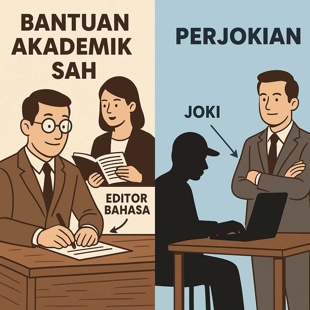Pertama-tama, kita perlu jujur bahwa menulis dalam bahasa asing bukan hal mudah. Bahkan banyak profesor di luar negeri pun bekerja sama dengan language editor atau proofreader untuk memperbaiki tulisan mereka. Jadi, penggunaan bantuan teknis bukanlah sesuatu yang tabu. Kesalahan terletak bukan pada keterbatasan bahasa, melainkan pada menyerahkan tanggung jawab intelektual kepada orang lain. Inilah garis tipis yang membedakan antara bantuan editorial yang sah dan perjokian yang melanggar etika.