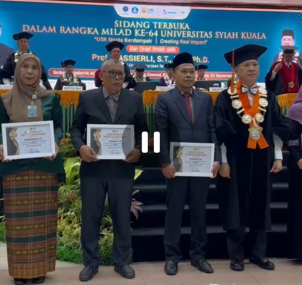 Pemberian penghargaan dilakukan langsung oleh Rektor USK, Prof. Dr. Ir. Marwan, IPU, dalam sidang terbuka yang turut dihadiri para pimpinan universitas, senat, dosen, mahasiswa, serta tamu undangan. Rektor menyampaikan apresiasi mendalam kepada seluruh ASN penerima penghargaan, termasuk Abdullah dan Muhammad Azim. “Prestasi ini mencerminkan dedikasi, loyalitas, serta kinerja yang luar biasa dari para ASN USK. Kami berharap penghargaan ini menjadi inspirasi bagi seluruh civitas akademika untuk terus berkarya dan berkontribusi bagi universitas dan bangsa,” ungkapnya.