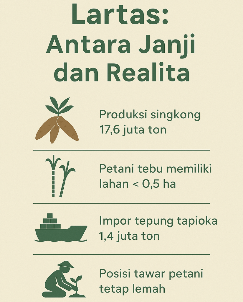 Di atas kertas, kebijakan ini memang terdengar manis. Petani singkong dan tebu, yang selama ini terhimpit rendahnya harga karena serbuan produk impor, seolah mendapat “perlindungan pagar negara”. Industri pun dikatakan tetap terpenuhi kebutuhannya dari produksi dalam negeri. Namun, di balik euforia itu, muncul pertanyaan tajam yang perlu kita ajukan: Lartas ini sebenarnya untuk siapa? Untuk petani kecil di desa-desa, atau untuk industri besar yang selama ini menguasai rantai pasok pangan dan energi?