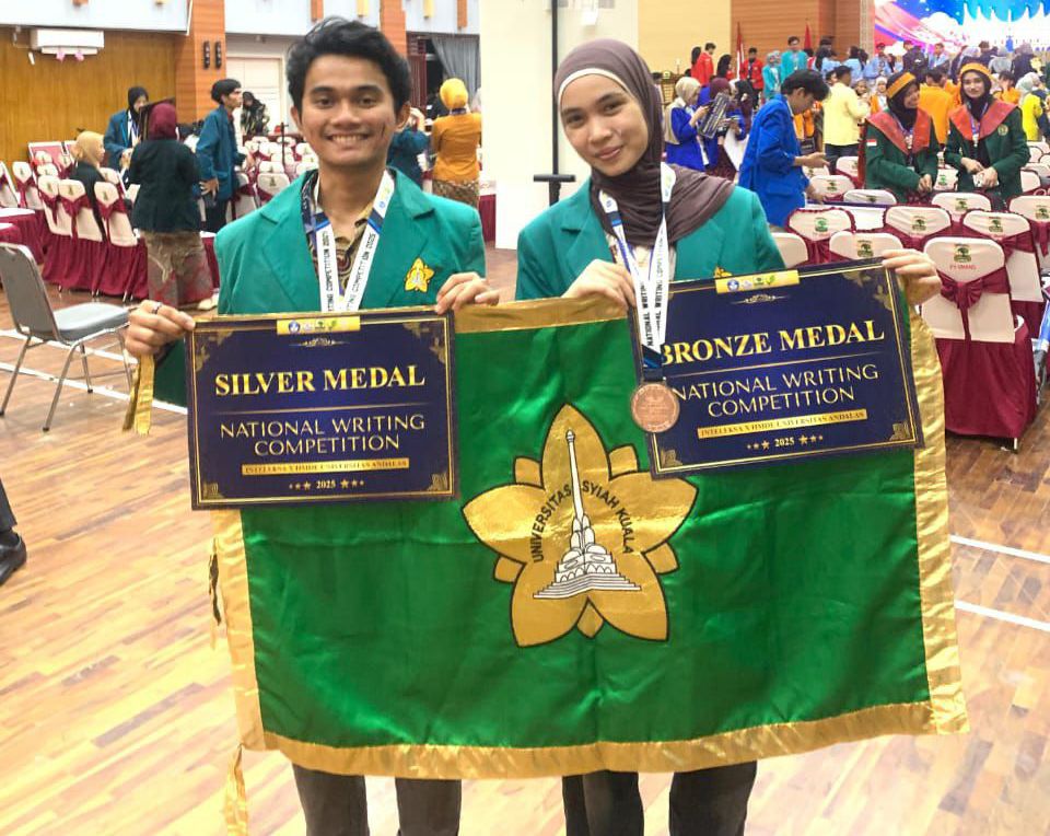 Banda Aceh – Prestasi kembali ditorehkan oleh mahasiswa Fakultas Pertanian Universitas Syiah Kuala (USK) di kancah nasional. Dua mahasiswa berbakat, Salsabila Suci Rahmah dan Denov Israel Siagian, sukses meraih Silver Medal dan Bronze Medal pada ajang National Writing Competition yang berlangsung di Universitas Andalas, Padang, Sumatera Barat, pada 31 Oktober – 4 November 2025.