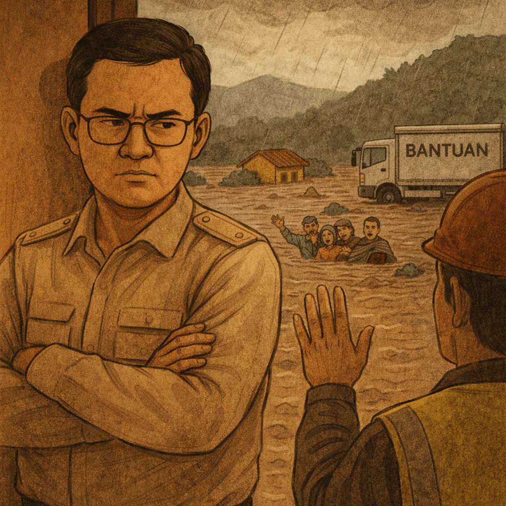 Bencana seharusnya menjadi ruang rekonsiliasi paling jujur. Di hadapan air bah dan tanah longsor, semua identitas politik menjadi kecil. Yang tersisa hanyalah manusia yang membutuhkan manusia lain. Ketika seorang pemimpin gagal membaca pesan ini, ia sedang gagal memahami makna kekuasaan itu sendiri.