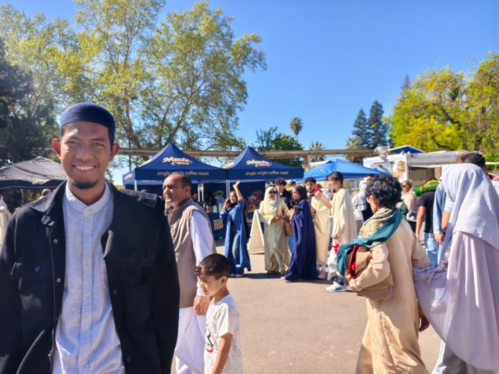 Usai pelaksanaan sholat, perayaan dilanjutkan dengan festival Eid yang berlangsung meriah hingga sore hari. Area Cal Expo berubah menjadi pusat kegiatan komunitas dengan berbagai stand bazar yang menawarkan makanan halal dari berbagai negara seperti Indonesia, Malaysia, Timur Tengah, dan Asia Selatan. Selain kuliner, terdapat pula stand produk UMKM, pakaian Muslim, serta berbagai kerajinan tangan yang mencerminkan keberagaman budaya Islam. Anak-anak dan keluarga juga menikmati berbagai wahana permainan, hiburan, serta kegiatan interaktif yang disediakan oleh panitia.