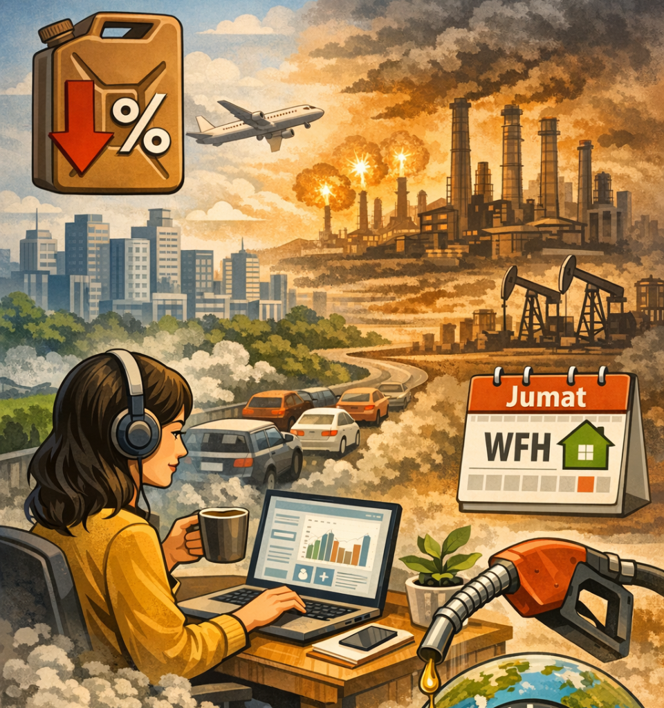 WFH bukan hanya soal lokasi bekerja, tetapi soal disiplin dan desain kerja. Pengalaman global selama pandemi COVID-19 menunjukkan bahwa WFH memang mampu menurunkan mobilitas secara signifikan. Data dari International Energy Agency mencatat bahwa selama puncak pandemi 2020, konsumsi minyak global turun hingga 9% dibandingkan tahun sebelumnya—penurunan terbesar dalam sejarah modern. Salah satu penyumbang utamanya adalah kebijakan kerja jarak jauh.
