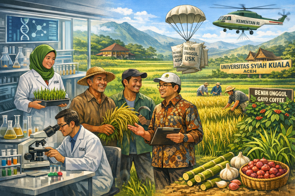 Langkah Kementerian Pertanian Republik Indonesia yang membeli benih padi hasil riset IPB University senilai Rp250 miliar pada April 2026 adalah peristiwa strategis yang tidak hanya penting bagi IPB, tetapi juga menjadi cermin bagi seluruh perguruan tinggi di Indonesia—termasuk Universitas Syiah Kuala. Ini bukan sekadar kebijakan pengadaan benih, melainkan sinyal transformasi bahwa negara mulai serius menjadikan riset sebagai tulang punggung ketahanan pangan nasional.
