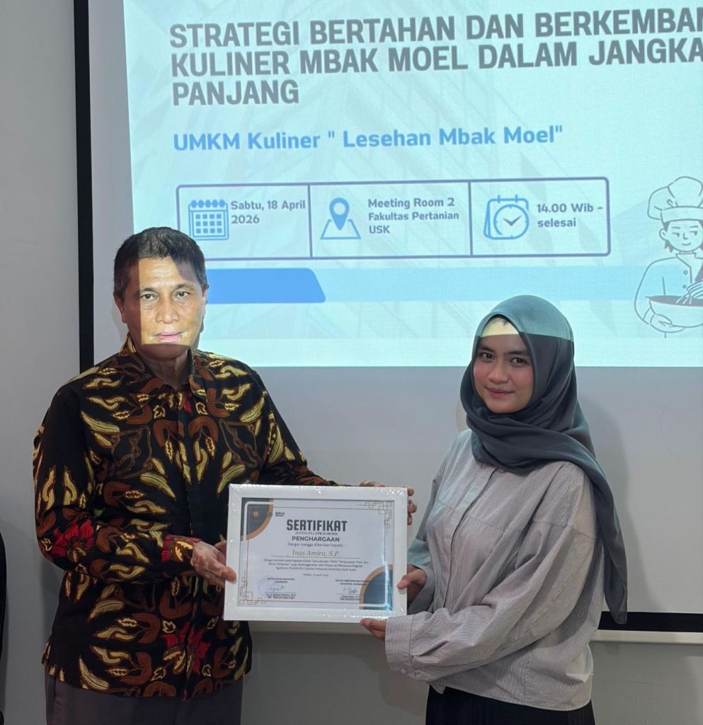 BANDA ACEH 18 April 2026 – Program Magister Agribisnis Universitas Syiah Kuala kembali menghadirkan ruang belajar kontekstual melalui kuliah tamu bertajuk “Strategi Bertahan dan Berkembang Kuliner Mbak Moel dalam Jangka Panjang” yang digelar pada Sabtu, 18 April 2026 di Meeting Room 2 Fakultas Pertanian.