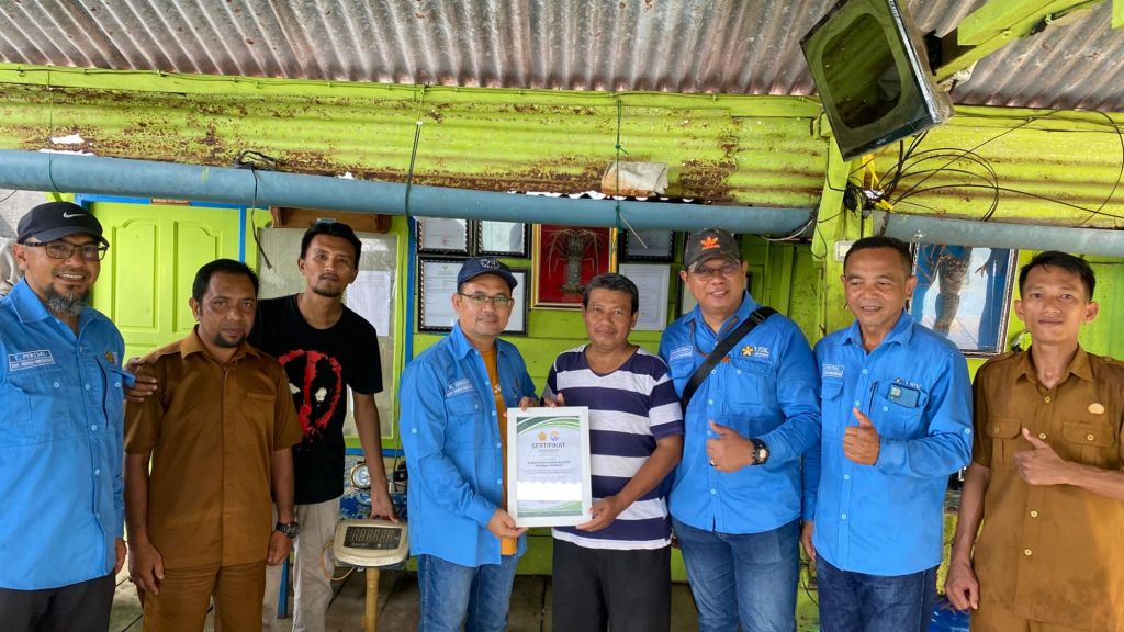 Dalam kunjungan tersebut, rombongan juga menyerahkan sertifikat sebagai bentuk apresiasi kepada mitra lokal yang telah berkontribusi dalam mendukung kegiatan akademik dan pengabdian masyarakat. Interaksi langsung dengan pengelola instalasi memberikan wawasan praktis mengenai tantangan operasional, mulai dari pengendalian penyakit hingga prosedur distribusi hasil perikanan.