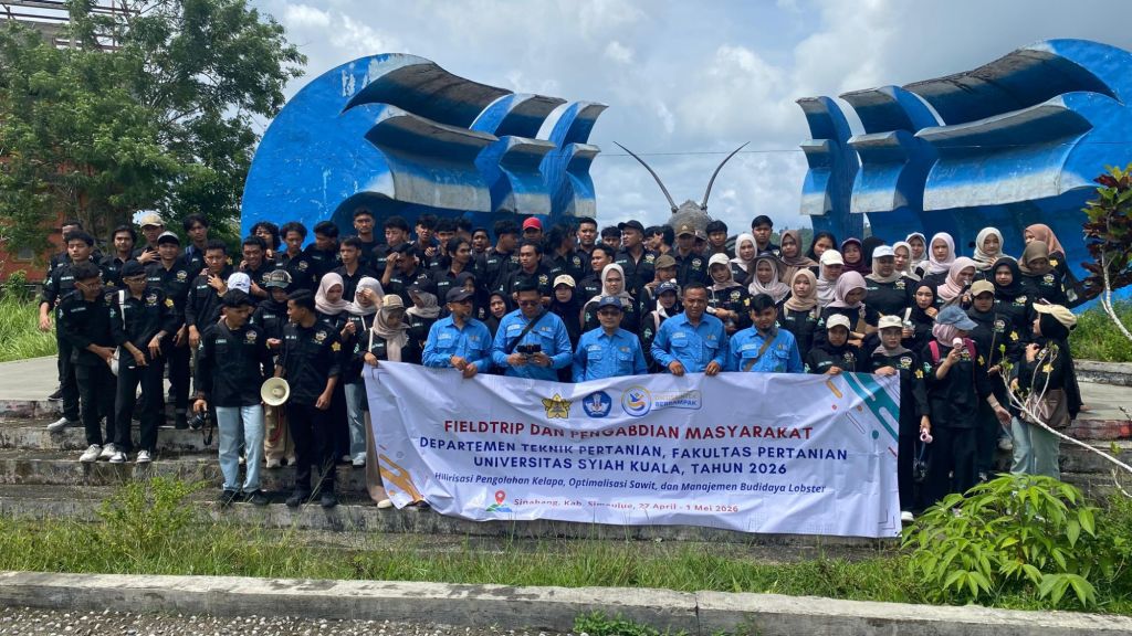 Simeulue, 28 April 2026 — Kegiatan field trip dan pengabdian masyarakat mahasiswa Departemen Teknik Pertanian, Fakultas Pertanian Universitas Syiah Kuala (USK) di Kabupaten Simeulue terus berlanjut dengan agenda yang semakin strategis. Setelah sebelumnya disambut Pemerintah Kabupaten Simeulue, rombongan kini menelusuri langsung rantai hilir komoditas unggulan daerah, termasuk sistem karantina ikan hingga penangkaran lobster.